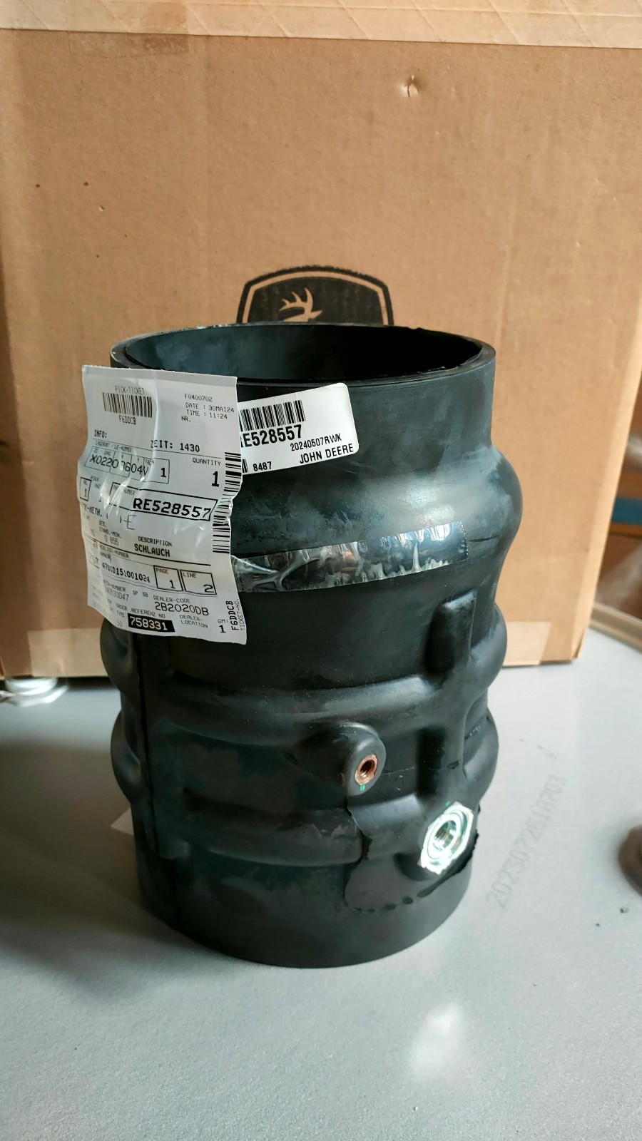 約翰迪爾發動機進氣管RE528557